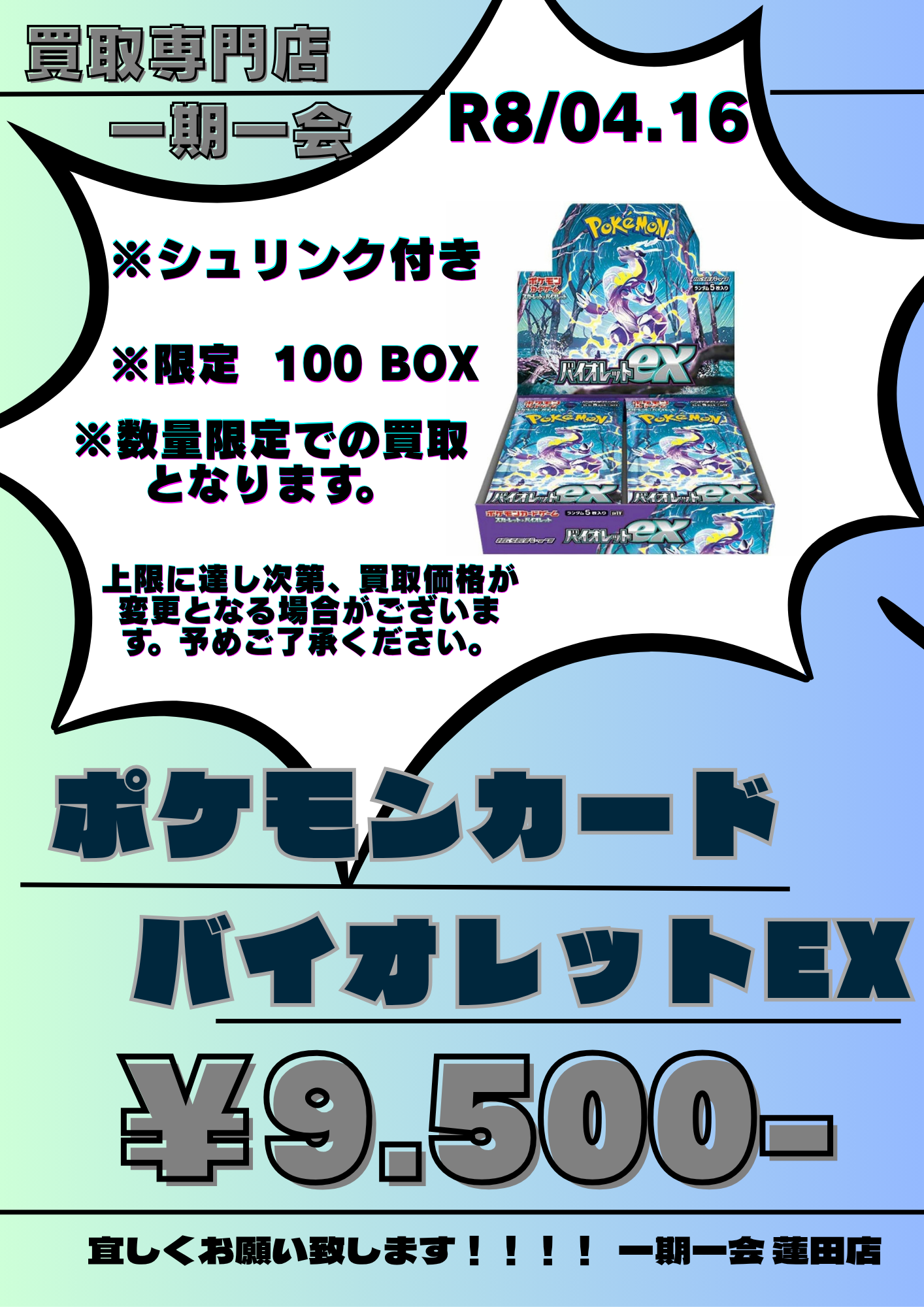 【蓮田】バイオレットexのBOXを100箱限定で超高価買取!50箱以上で1箱1万円の大チャンス